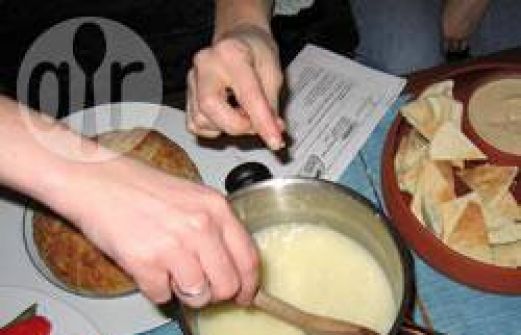 Portionen : 4 500 g Brot (z.B. Baguette) 200 g Gemüse (z.B. Champignons, Brokkoli und Karotten) Salz 300 g grobgeriebener Greyerzer 300 g geriebener Emmentaler 2 TL Maisstärke 1 Knoblauchzehe ⅜ l trockener Weißwein 2 EL Kirschwasser weißer Pfeffer geriebene M [...]