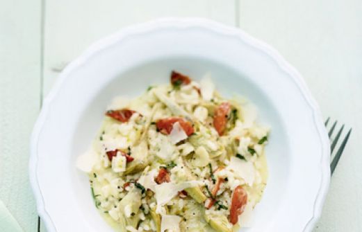 Artischockenrisotto mit getrockneten Tomaten Zutaten 8 kleine Eiertomaten 6 EL Olivenöl Salz Pfeffer 2 EL Puderzucker 4 mittelgroße Artischocken 2 Schalotten 1 Knoblauchzehe 200 g Risottoreis (z. B. Arborio) 100 ml Weißwein 700 ml Geflügelbrühe- oder Gemüsebrühe 3 Stänge [...]
