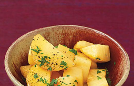 Glasiertes Wurzelgemüse Zutaten 400 g Pastinaken 400 g Knollensellerie ½ Bund Petersilie 2 EL Butterschmalz 3 EL Ahornsirup 100 ml Birnen- oder Apfelsaft 100 ml Gemüsefond 1 Lorbeerblatt 1 TL getrockneter Majoran Salz Pfeffer guk:similarity-keywords=""> 400 g Pasti [...]