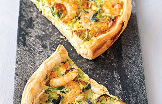 Garnelen-Lauch-Tarte Zutaten 2 Knoblauchzehen 3 dünne Stangen Lauch 1 EL Butter ½ TL getrockneter Dill 2 TL frisch gepresster Zitronensaft 250 g Garnelen 150 g Crème fraîche 3 Eier Salz Pfeffer 1 Packung Blätterteig (275 g, Kühlregal) guk:similarity-keywords=""> [...]
