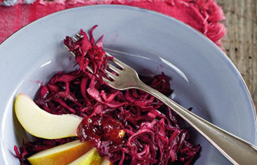 Rotkohlsalat mit Birnen und Preiselbeerdressing Zutaten 1 kleiner Rotkohl (ca. 1 kg) Salz 2 reife Birnen 1 EL frisch gepresster Zitronensaft 200 ml Apfel- oder Birnensaft 1/2 Zimtstange 2 Gewürznelken 2 EL Preiselbeeren (aus dem Glas) 3 EL Rotweinessig 4 EL Sonnenblumenöl [...]