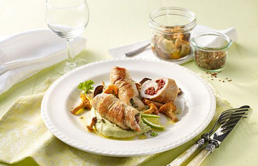 für 2 Personen 4 Stk kleine Putenschnitzel 2 Stk Avocado Saft einer Limette Cayennepfeffer Salz 50 g Austernpilze 50 g Shiitake-Pilze 100 g Pfifferlinge 4 EL Olivenöl 2 Zweige Thymian 2 Zweige Rosmarin 1 Stk Knoblauchzehe einige Pfefferkörner 100 g getrocknete Tomaten aus dem Glas Pfeffer aus [...]