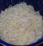 Portionen : 4 5 EL Olivenöl 4 Schalotten, fein gewürfelt 1 große Zwiebel, in dünne Streifen geschnitten 450 g Speck oder Pancetta, in feine Streifen geschnitten 1 Knoblauchzehe, fein gehackt 1 Packung Packung (500 g) Fettuccine oder Spaghetti 3 Eigelb 120 ml Sahne [...]