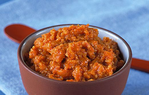 Rübli-Grünkern-Aufstrich Zutaten 1 kleine Zwiebel 2 Möhren (ca. 200 g) 1/4 l Möhrensaft 80 g Grünkernschrot (Bioladen, Reformhaus) 1 EL Sojasauce 1 EL Olivenöl 1 TL Honig Salz Pfeffer guk:similarity-keywords=""> 1 kleine Zwiebel , 2 Möhren (ca. 200 g) , 1/ [...]