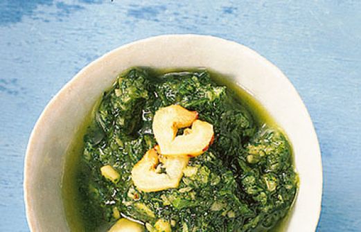 Pesto mit Rucola & Kürbiskernen Zutaten 1 Bund Rucola 1 Bund Petersilie 2 Knoblauchzehen 3 EL grünschalige Kürbiskerne 2 EL geschälte Sonnenblumenkerne 40 g zerbröckelter Parmesan 75 ml Sonnenblumenöl 1 EL Kürbiskernöl Salz Pfeffer aus der Mühle guk:similarity-keywo [...]