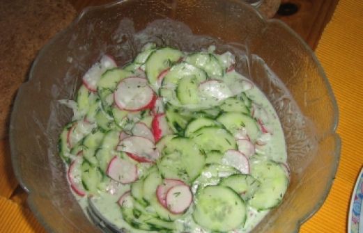 zutaten_2sp"> Zutaten für Personen Rezept mit Bild: Gurkensalat mit Radieschen Bild einstellen 1 Stück Salatgurke 0.5 Bund Radieschen 1 Stück Zwiebel 1 Bund Dill frisch 125 g Joghurt fettarm Pfeffer, [...]