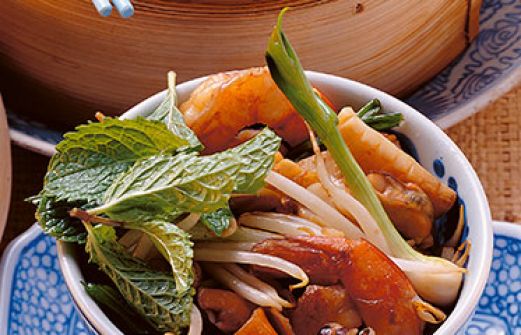 Meeresfrüchte mit Minze Zutaten 800 g küchenfertige Meeresfrüchtemischung 2 EL asiatische Fischsauce (Fertigprodukt) Salz Pfeffer 1/2 TL Palm- oder brauner Zucker 250 g frische Bohnensprossen 1 Bund Frühlingszwiebeln 3 Zweige Asia-Minze 2 Knoblauchzehen 2 kleine frische rote [...]