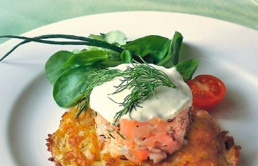Tatar vom Graved Lachs mit Limonencrème auf Kartoffelrösti Zutaten LACHS-TATAR: 300 Gramm Graved Lachs 1 kleine Schalotte 1 TL Dijonsenf 1/2 TL Akazienhonig 1 TL Weißweinessig 1 TL Limettensaft 1 EL Rabssöl 1 EL frisch gehackter Dill schwarzer Pfeffer LIMONENCREME: 100 Crème-fr [...]