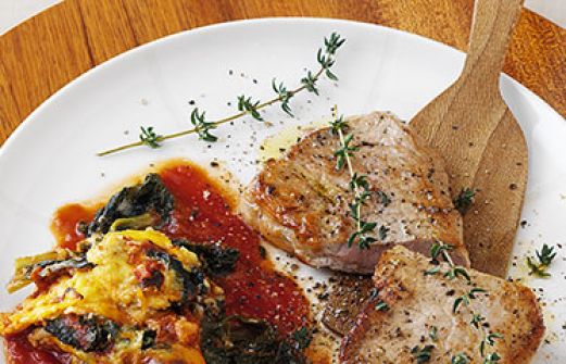 Schnitzel mit Grünkohlgratin Zutaten 600 g TK-Grünkohl 1 Zwiebel 2 EL Olivenöl 1 kleine Dose geschälte Tomaten (400 g Inhalt) Salz Pfeffer 1 TL Thymian 40 g geriebener Edamer (30 % Fett i.Tr.) 100 ml Milch (1,5 % Fett) Muskatnuss, frisch gerieben 4 Schweineschnitzel à [...]