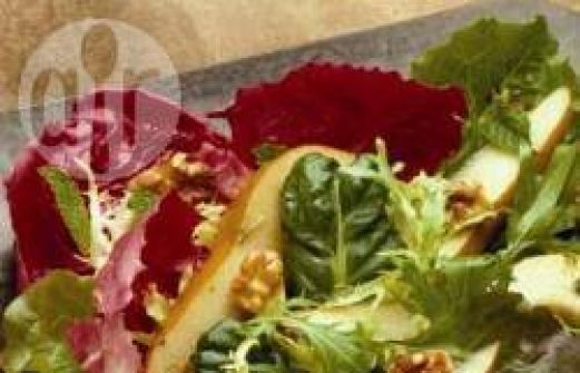 Portionen : 6 2 EL Balsamico-Essig 100 ml Aprikosennektar einige frische Pfefferminz-Blätter 1 Prise Salz 1 TL Senf 2 mittelgroße Birnen 120 g gehackte kalifornische Walnüsse diverse Salate (z.B. Kopfsalat, Rucola, Endivien, Radicchio), ausreichend für 6 Portion [...]