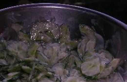 Portionen : 6 2 frische Salatgurken 125 g Naturjoghurt 2 EL Sahne 2 kleingehackte Knoblauchzehen Salz Pfeffer 1 Handvoll Blätter frische Minze Zub.: 10 Min. 1. Gurken der Länge nach halbieren. Samen mit einem Löffel herauskratzen und Gurken würfeln. [...]