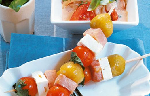 Kasseler-Feigen-Spieße Zutaten 1 Dose grüne Feigen (210 g Abtropfgewicht) 300 g gekochtes Kasseler 200 g Schafkäse (Feta) 12 Kirschtomaten 12 große Basilikumblättchen 2 EL Feigensenf 4 große Holzspieße guk:similarity-keywords=""> 1 Dose grüne Feigen (210 g Abtropfgewicht [...]