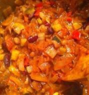 Portionen : 4 2 EL Olivenöl 1½ Tassen fein gehackte Selleriestange 1½ Tassen Paprika, fein gehackt 2 Zwiebeln, gehackt 3 Knoblauchzehen, gehackt 1 ½ l Tomatensauce 2 Dosen Kidney-Bohnen ½ Tasse Rosinen 3 EL Rotweinessig oder Balsamico ¼ l Bier 150 g [...]