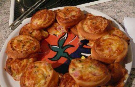 zutaten_2sp"> Zutaten für Personen Rezept mit Bild: Pizzaschnecken Bild einstellen 2 Hefeteig aus Kühlregal 300 gr Schinken 2 Zwiebel 4 EL Crème fraîche 2 Eier 300 gr Gouda gerieben Petersili [...]