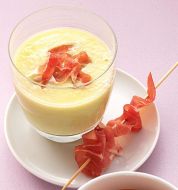Portionen : 4 1 kleine Honigmelone oder Cantaloup-Melone 1 Dose (400 ml) Kokosmilch light 2 EL Honig Saft von 2 Limetten ½ TL Zimt ¼ TL Ingwerpulver Zub.: 10 Min. 1. Melone halbieren, Samen und Schale entfernen. Im Standmixer mit allen anderen Zutaten fein [...]