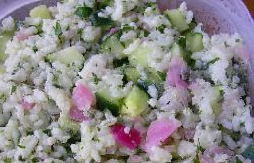 Portionen : 6 300 g Langkornreis Salz 2 Salatgurken 1 Handvoll frische glatte Petersilie 1 Handvoll frische Minze 1 EL fein gehackte rote Zwiebel oder Frühlingszwiebel 4 EL Weißweinessig 3 EL extranatives Olivenöl 115 g Naturjoghurt frisch gemahlener sch [...]