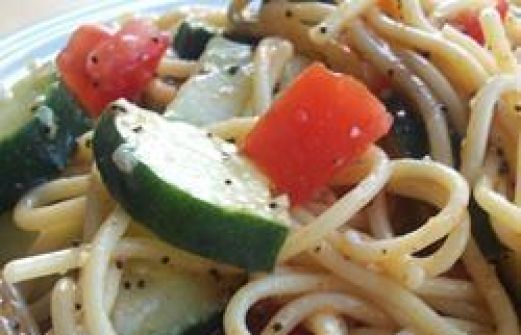 Portionen : 4 250 g Spaghetti, in 5 cm lange Stücke gebrochen fertiges Salatdressing "Italian" (z.B. von Kraft) 1 EL geriebener Parmesan 1 EL Sesamsamen 1 EL Mohn 2 TL Gewürzsalz 1 TL Paprikapulver 1/2 TL Knoblauchpulver 1/2 TL frisch gemahlener schwarzer P [...]