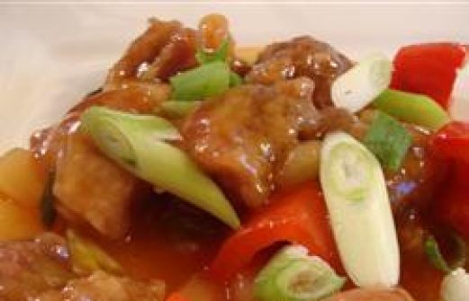 Portionen : 4 500 g Schweineschulter, in ca. 3 cm große Würfel geschnitten 1 TL Salz 1/4 TL Zucker 1 TL Sojasoße 1 Eiweiß 2 Frühlingszwiebeln, klein geschnitten 1 l pflanzliches Öl zum Frittieren 70 g Stärkemehl 1 EL pflanzliches Öl 3 Stangen Stel [...]
