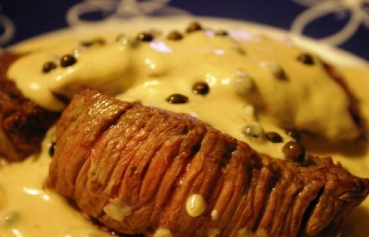 Menge Zutat 4 Schb Rinderfilet 2 TL grünen Pfeffer aus dem Glas 1 EL Butter 1 TL Senf, mittelscharf 50 ml Brandy 200 ml Sahne [...]