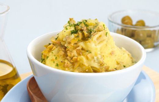 Kartoffelpüree mit Oliven Zutaten 800 g vorwiegend festkochende Kartoffeln Salz 150 g grüne Oliven 4 Stängel Petersilie 80 ml Gemüsefond (aus dem Glas) 1 EL Crème fraîche oder Ziegenfrischkäse (2 EL mehr Olivenöl gehen auch) 6 EL Olivenöl 1 TL Zitronensaft Pfeffer guk:simi [...]