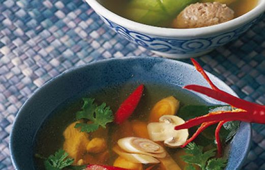 Zitronengrassuppe mit Hähnchen Zutaten 250 g Hähnchenbrustfilet 200 g kleine Champignons 2 Stängel Zitronengras 1 Stück frischer Galgant (ca. 8 cm) 8 Kaffir-Limettenblätter 3-6 kleine rote Chilischoten je 4 EL Fischsauce und Limettensaft guk:similarity-keywords=""> 250 [...]