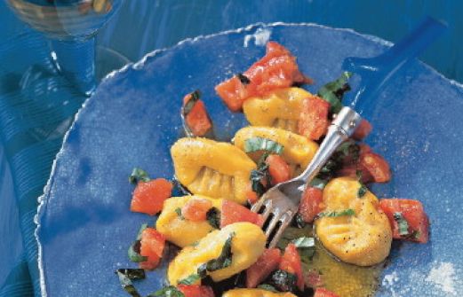 Kürbis-Gnocchi mit Basilikum-Tomaten Zutaten 1 kg Kürbis (z. B. Marina di Chioggia oder Hokkaido) Salz etwas frisch geriebene Muskatnuss ca. 125 g Weizenmehl 50 g frisch geriebener Parmesankäse 500 g Tomaten 2 EL Olivenöl 40 g Butter Pfeffer 2 EL fein geschnittenes Basilik [...]