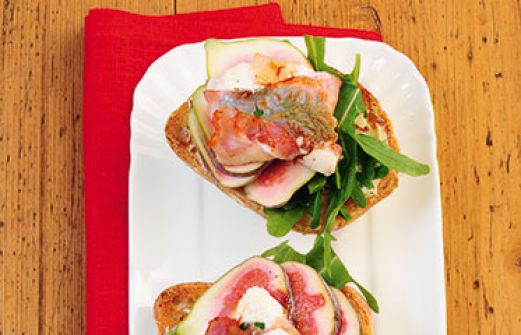 Ciabatta mit Ziegenkäse und Feigen Zutaten 1 Bund Rucola 4 Blätter frischer Salbei 4 Ziegenfrischkäsetaler (ca. 100 g) 4 Scheiben Frühstücksspeck (Bacon) 4 Feigen oder Pflaumen 1 TL Öl 2 Ciabatta-Brötchen 30 g Knoblauch- oder Kräuterbutter (Fertigprodukt; Kühlregal) guk:si [...]