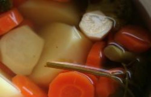 Portionen : 6 2 Karotten, in Scheiben geschnitten 1 Petersilienwurzel, in Scheiben geschnitten 1 Sellerieknolle, in Scheiben geschnitten 4 mittelgroße Kartoffeln, gewürfelt 1 Bund frische Petersilie, gehackt 6 Pfefferkörner 2 Lornbeerblätter 1 Gemüsebrühwürfel [...]