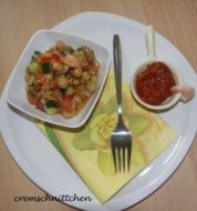 Portionen : 4 1 Dose Kichererbsen (425 g), abgespült und abgetropft 60 g sonnengetrocknete Tomaten in Öl, abgetropft und in Streifen geschnitten 250 Feta-Käse, zerkrümelt 1 rote Zwiebel, gehackt 2 Knoblauchzehen, gehackt 1 EL gehackter frischer Koriander 2 EL Olivenöl [...]