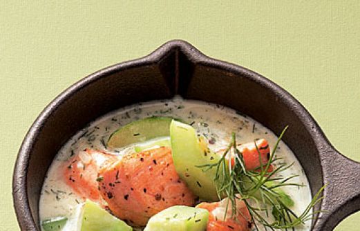 Lachs-Gurken-Pfanne Zutaten 400 g Salatgurke 1 mittelgroße Zwiebel 1 TL Koriandersamen 300 g Lachsfilet Salz schwarzer Pfeffer 2 EL Rapsöl 125 ml Gemüsebrühe 200 g Sahne 3 Stängel Dill guk:similarity-keywords=""> 400 g Salatgurke , 1 mittelgroße Zwiebel , 1 [...]