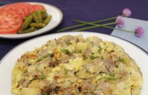 Portionen : 6 4 EL Öl 1/2 große Zwiebel, halbiert 350 g Schweineschnitzel, in 2 cm große Würfel geschnitten Salz Pfeffer 300 g gare festkochende Kartoffeln ¼ TL Kümmel ¼ TL Majoran 1 Prise Muskatnuss 4 Eier, verrührt 2 EL frischer Schnittlauch, gehack [...]