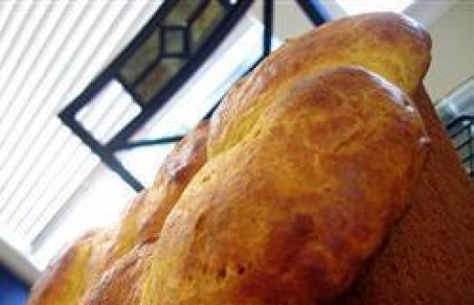 Ergibt : 1 Laib 1 Päckchen (7 g) Trockenhefe 1 Prise Zucker 3 EL warmes Wasser (40 C) 250 g Kürbispüree 470 g Mehl 60 g brauner Zucker 1 TL Salz 1 TL Zimt 1/2 TL Muskatnuss 1/2 TL Piment 4 Eier 225 g Butter 1 Eigelb 1 EL Milch Zub [...]