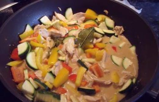 zutaten_2sp"> Zutaten für Personen Bild einstellen 400 g Hähnchenbrustfilet 1 Stk. rote Paprika 1 Stk. gelbe Paprika 2 Stk. kleine Zucchini 400 ml Kokosmilch 1 ½ TL rote Thai-Currypaste oder mehr, je nach Schärfegra [...]