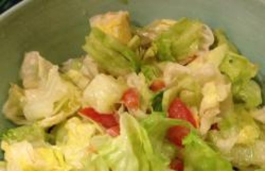 Portionen : 4 1 kleiner Eisbergsalat 2-3 Tomaten, gewürfelt 1/2 Gurke, geschält, der Länge nach halbiert und in Scheiben geschnitten 1/4- 1/2 kleine Zwiebel, sehr fein gehackt Für das Dressing: 4 EL weißer Balsamico 4 EL Rapsöl 4 EL Sahne 1 TL Salz 2 T [...]