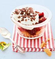 Feigen-Himbeer-Trifle Zutaten 250 g Sahnequark 2 EL Limettensaft 1 1/2 EL Ahornsirup 4 frische Feigen ca. 150 g Himbeeren 120 g weiche Amaretti (Mandelplätzchen) 8 EL Sherry medium (ersatzweise Orangensaft) 2 TL Puderzucker guk:similarity-keywords=""> 250 g Sahnequark , [...]