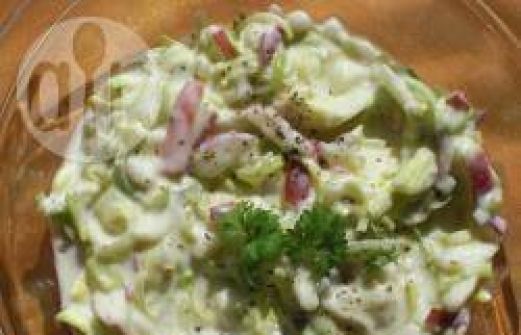 Portionen : 2 2 Lauchstangen 1 Apfel, mit Schale gestiftelt leichte Mayonnaise (Miracel Whip) Salz Pfeffer Zub.: 15 Min. | Ruhezeit: 15 Min., Einweichen 1. Lauch in ganz feine Ringe schneiden und 15 Minuten in lauwarmem Wasser einweichen, dann wird er milder. [...]