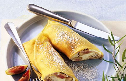 Feigen-Crêpes mit Mascarpone Zutaten 1 1/2 EL Butter 150 g Mehl 350 ml Milch 3 Eier (Größe M) Salz 4 EL Mineralwasser mit Kohlensäure 6 EL Puderzucker abgeriebene Schale von 1/2 unbehandelten Orange 250 g Mascarpone 2 Msp. Vanillepulver Saft von 1/2 Limette 100 g Quark 6 [...]