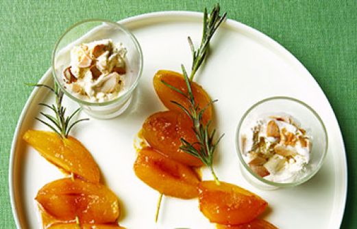 Aprikosen-Rosmarin-Spieße mit Mandelparfait Zutaten 75 g ganze geschälte Mandeln 125 g Milch 140 g Zucker 5 Eigelbe 375 ml Sahne 25 ml Amaretto 10 Aprikosen 100 g Butter 80 g Zucker 1 Vanilleschote 4 Rosmarinzweige guk:similarity-keywords=""> 75 g ganze geschälte [...]
