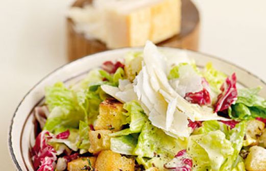 Caesar'S Salad mit Leinsamen-Croûtons Zutaten 2 Köpfe Romanasalat (à 400 g) ½ Kopf Radicchio (120 g) 60 g Parmesan 2 Sardellenfilets in Öl 1 kleine Knoblauchzehe 2 Eigelbe (Größe M) 1 TL mittelscharfer Senf 1 TL scharfer Senf 1 EL Zitronensaft 2 EL Weißweinessig 100 ml Gemü [...]