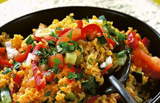 Bulgursalat Zutaten 150 g Bulgur (grober Hartweizengrieß) 1 kleine Salatgurke 1 rote Spitzpaprikaschote 1 kleine Zwiebel 2 Bund Petersilie 4 Tomaten 3 EL Zitronensaft Salz Pfeffer 1 TL edelsüßes Paprikapulver 3-4 EL Olivenöl guk:similarity-keywords=""> 150 g Bulgu [...]