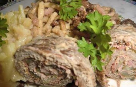 zutaten_2sp"> Zutaten für Personen Rezept mit Bild: Rinderrouladen mit Pfifferlingsößchen und Spätzle Bild einstellen 4 Stück Rinderrouladen 8 Scheiben Schwarzwälder Schinken 4 EL Senf süß 4 Stück Gewürzgu [...]