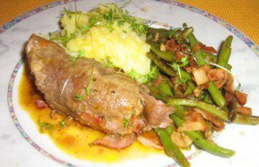 zutaten_2sp"> Zutaten für Personen Rezept mit Bild: Rinderrouladen Jägerart an Bohnengemüse und Kartoffelsalat Bild einstellen 5 Stück Rind Roulade (ma) frisch 5 Teelöffel Dijonsenf 10 Scheibe Schwarzwälder [...]