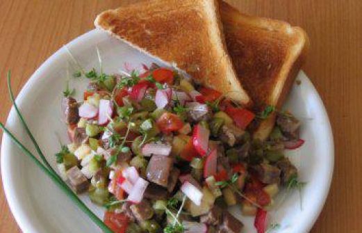 zutaten_2sp"> Zutaten für Personen Rezept mit Bild: Rindfleischsalat Bild einstellen 1 Beinscheibe wenig Fett, 1 Markknochen Suppenfleisch Rind, am Besten ist Tafelspitz Suppengemüse 1 Zwiebel Salz [...]