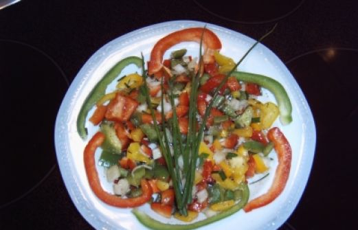 Menge Zutat 6 St Paprika verschiedener Farben 2 St Zwiebeln 1 Bund Schnittlauch 1 Bund Petersilie 1 EL Kräuter der Provence 3 St Kn [...]