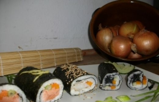 zutaten_2sp"> Zutaten für Personen Rezept mit Bild: Sushi in 3 Variationen Bild einstellen 200 g Sushireis Asiashop) 200 g Scrimps oder Krabben 1 Lachssteak 100 g Kaviar 2 Karotten 2 Frühlingszwiebeln [...]