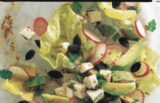 Avocado-Radieschen-Salat mit Kerbel-Dressing Zutaten 4 Avocados 2 Esslöffel Limettensaft 2 Mozzarella-Käse (á 125 g) grober Pfeffer 150 g Kopfsalat 1 Bund Radieschen 20 g Kürbiskerne 4 Esslöffel Zitronenessig 8 Esslöffel Gemüsebrühe Salz Pfeffer 1 Teelöffel körniger Dij [...]