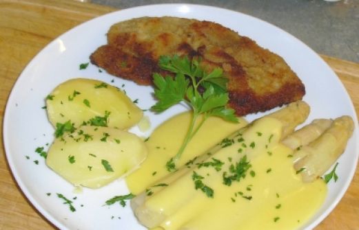 Menge Zutat 4 Schb Kalbsschnitzel 4 St Eier 6 EL Mehl, gehäuft 6 EL Semmelbrösel etwas Pflanzencreme 125 g Butter [...]