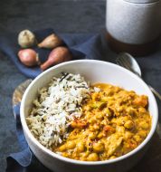 Fischeintopf mit Blumenkohl, Curry und Kokosmilch Zutaten 1 kleine Zwiebel (70 g) 1 kleine Knoblauchzehe 200 g Blumenkohl 1 EL Pflanzenöl 1 TL rote thailändische Currypaste (Asiamarkt) 1 TL Tomatenmark 1 kleine Dose Kokosmilch (165 ml) 150 g Sahne 1 Stängel Zitronengras (15 g [...]