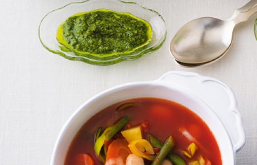 Gemüsesuppe mit Pistou Zutaten 400 g grüne Bohnen 500 g Möhren 4 Stangen Lauch 2 Zwiebeln 4 mittelgroße, festkochende Kartoffeln 1 Bund Kräuter der Provence (Rosmarin, Thymian, Lorbeer) 1 Dose weiße Bohnen (580 g Abtropfgewicht) 1 große Dose stückige Tomaten (850 ml) 2 Bund [...]