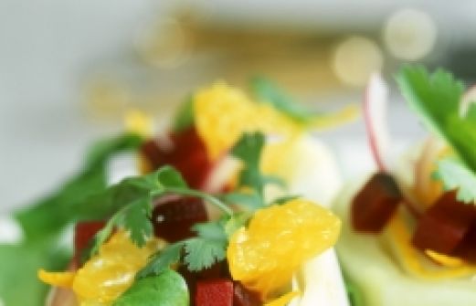 Menge Zutat 500 g Rote Bete 2 Knollen 250 g Knollensellerie 1 EL Zitronensaft 3 Orangen 1 Kpf Eichblattsalat 200 g Sahnejoghurt [...]